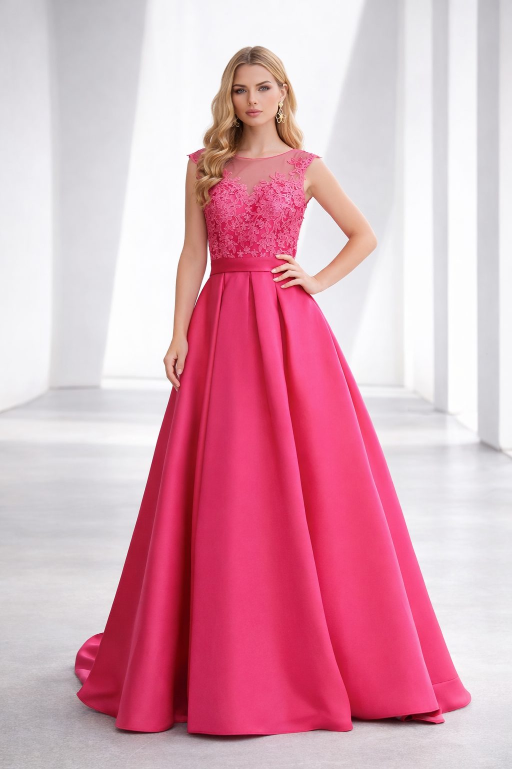 Vestido colección INVITADAS 2026, vestido para destacar en tus eventos 2026, vestido corte A, falda capa y cuerpo encaje