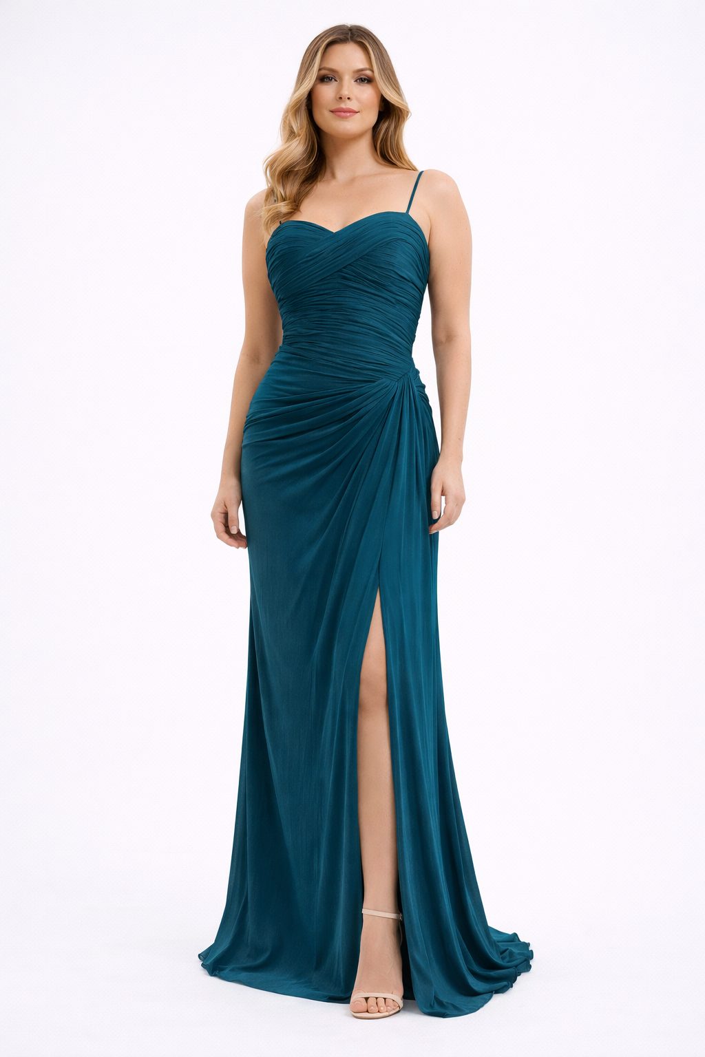 Vestido largo para invitadas, todo drapeado, que da cuerpo y estructura al vestido, ideal para resaltar la figura